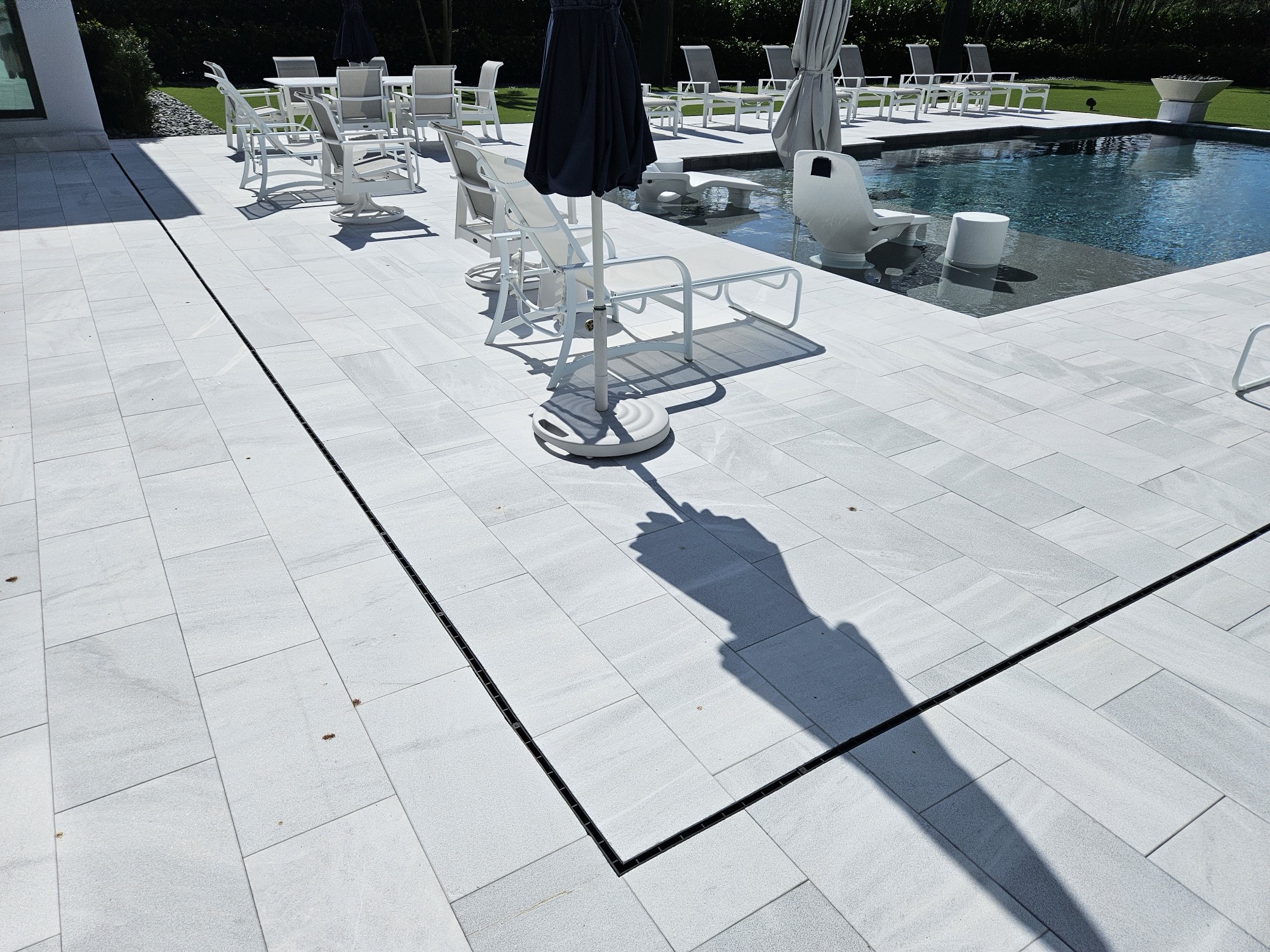 Ally Construction Services, a construction and remodeling company based in Jupiter, Florida, was seeking an effective water drainage solution for a pool deck they were building for a client. The project required a system that not only handled sufficient water flow but also complemented the aesthetic of the surrounding area. After reviewing our catalog, the company selected Vodaland’s Plastic Slot Drain System as the ideal solution.
