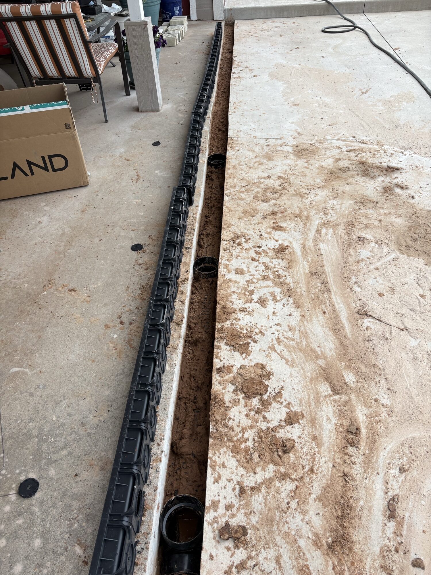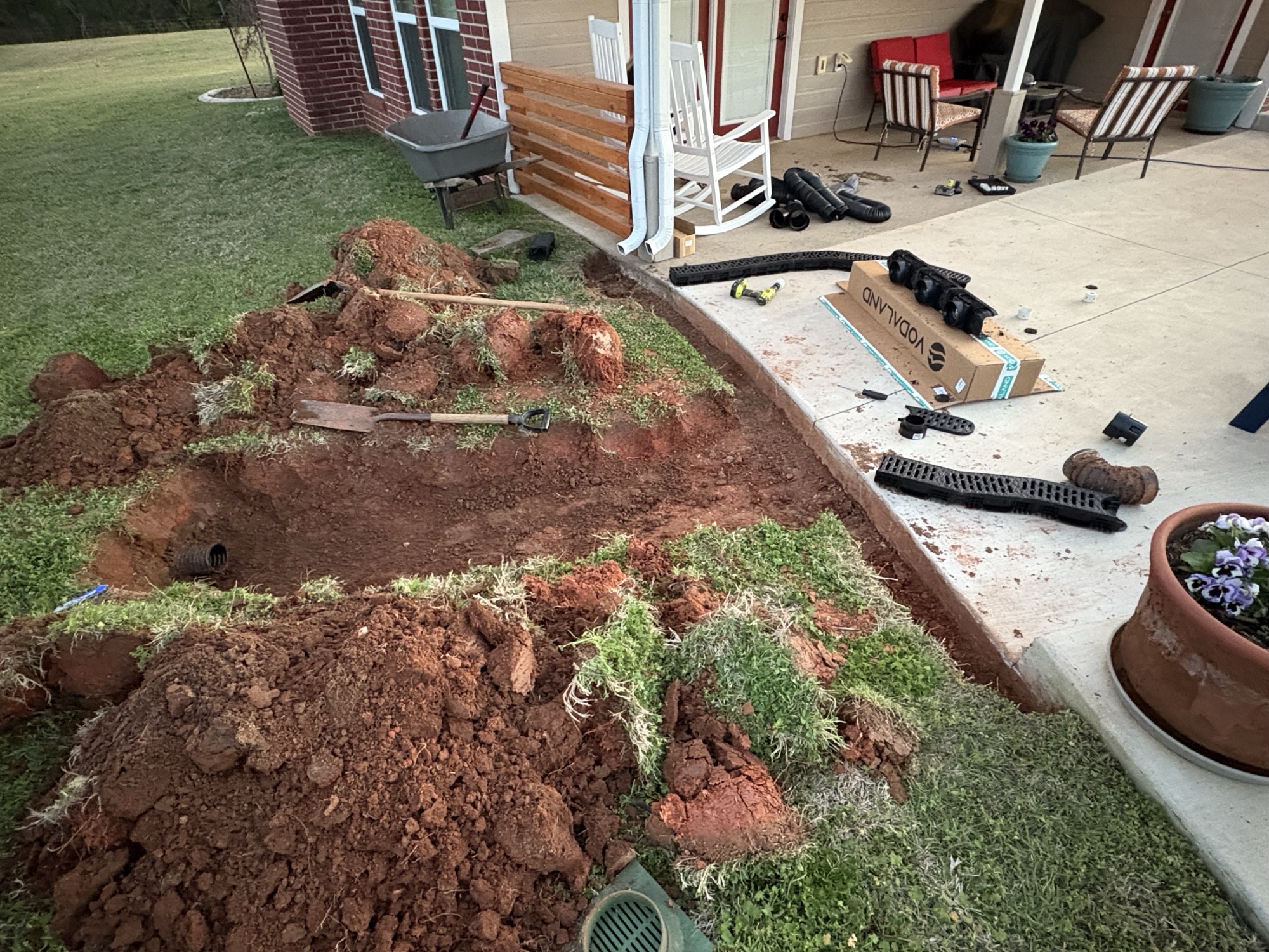 Clayton, a homeowner, was looking for a solution to the recurring water pooling he experienced on his patio when it would rain. The homeowner needed a reliable drainage solution that could handle heavy rain and pedestrian foot traffic. After researching several options, both in stores and online, he selected Vodaland’s Easy Home System.