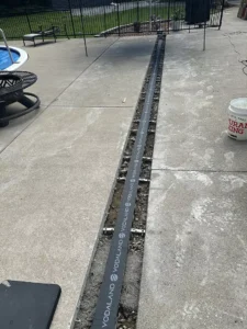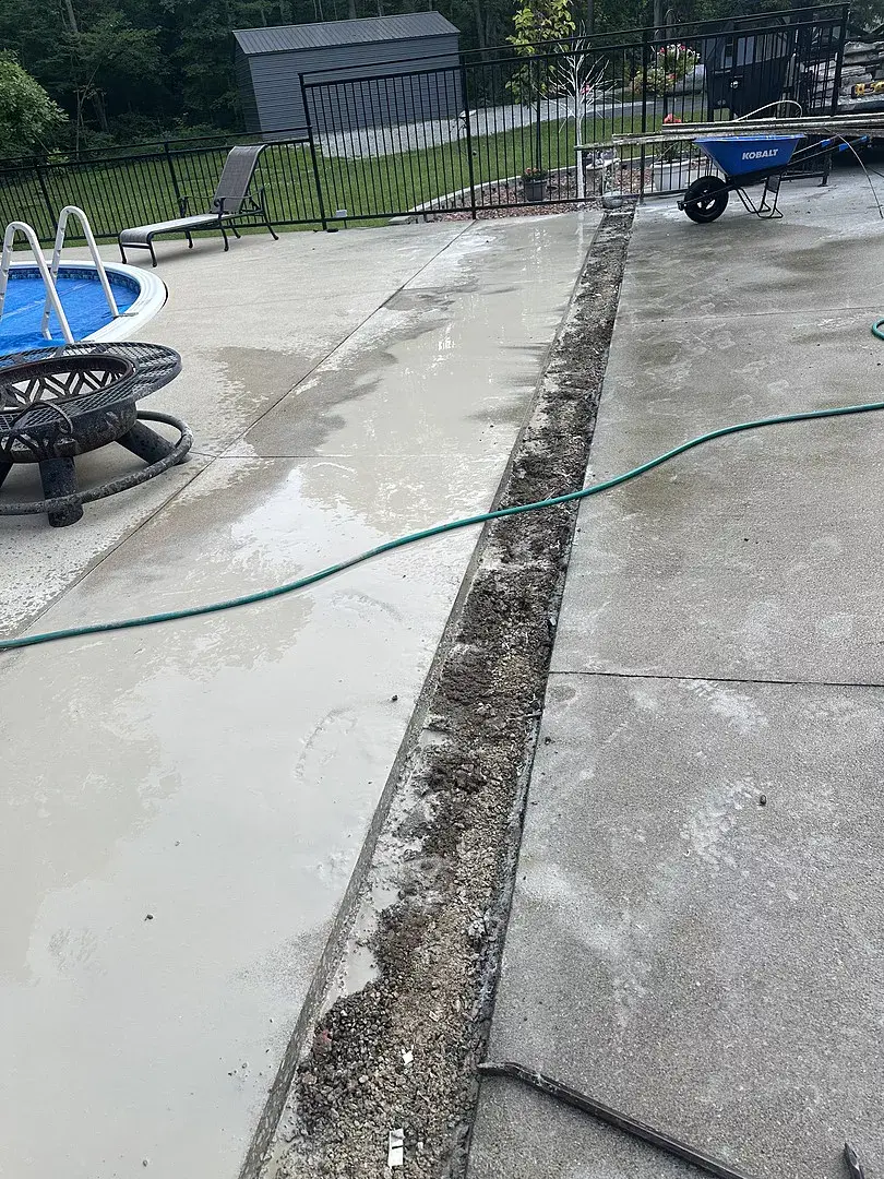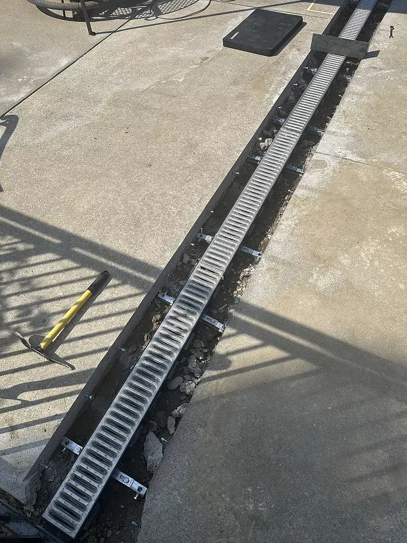 Jeff Krauter, a homeowner in Roanoke, Indiana, was looking to upgrade the drainage on his 25-year-old concrete pool deck. The existing system was outdated, dirty, worn, and partially broken, which led to leaks and inconsistent water flow. It was not only failing in function but also detracting from the overall appearance of his outdoor space. Since the area experiences regular foot traffic and serves as a central feature of his patio and pool area, Jeff needed a solution that was both highly functional and visually appealing.